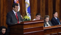 Поштовани народни посланици, данас је наша дужност да ствари назовемо правим именом. Наша је дужност да, дајући јасан одговор, одбијемо да сами будемо саучесници у узмицању права пред силом. Потребно је да цео свет сазна да се овде не ради ни о чему другом него о отвореном и грубом насртању на интегритет једне демократске, европске државе. Посебно и зачуђује и забрињава упорност којом се баш од Србије тражи нешто што ниједна држава никада не може дати, ако неће да изгуби своју државност, свој идентитет, своје место међу људима и народима.