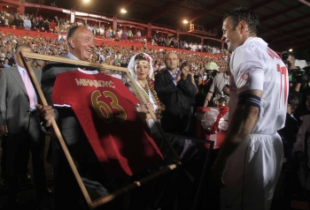 Нови Сад, 28. мај 2007. године - Прослављени фудбалски репрезентативац Синиша Михајловић опростио се вечерас од активног играња фудбала у ревијалној утакмици, коју су на стадиону Војводине у Новом Саду одиграле екипе италијанског Интера и "Михиних пријатеља".