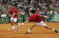 Другог дана сусрета, српски пар Новак Ђоковић-Ненад Зимоњић победио је у четири сета Лејтона Хјуита и Пола Хенлија - 3:6, 6:4, 6:3, 6:2.