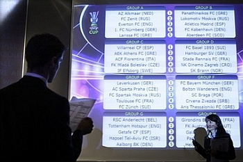 Нион, ШВАЈЦАРСКА, 9. октобар 2007. године - Фудбалери Црвене звезде играће са Бајерном из Минхена, енглеским Болтоном, португалском Брагом и грчким Арисом из Солуна у групи "Ф" лигашког дела Купа УЕФА, одређено је данас жребом у швајцарском Ниону.