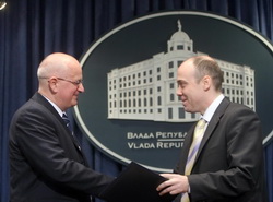 Београд, 12. јануар 2008. године – Министар за државну управу и локалну самоуправу у Влади Републике Србије Милан Марковић и председник Синдиката запослених у управи, правосуђу и друштвеним организацијама Србије Његош Потежица потписали су данас Протокол којим се, између осталог, регулише повећање зарада запослених у органима државне управе и локалне самоуправе.