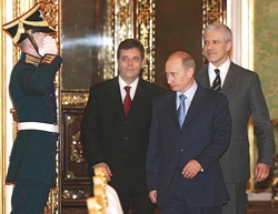 Путин је, поздрављајући у Кремљу делегацију Србије коју предводе Тадић и Коштуница, истакао да се односи двеју земаља добро развијају и да је од 2000. до 2007. године робна размена повећана шест пута.