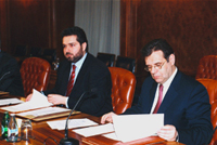 Београд, 3. март 2004. године - Влада Републике Србије одржала је данас прву седницу којом је председавао премијер Војислав Коштуница.
