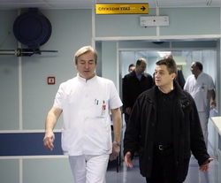 Томица Милосављевић, десно, у обиласку повређених на ВМА |