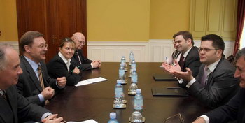 Београд, 8. мај 2008. године – Министар спољних послова у Влади Републике Србије Вук Јеремић разговарао је данас са председником Одбора за спољне послове Државне думе Руске Федерације Константином Косачовим о решавању статуса Косова и унапређењу односа двеју земаља.