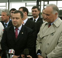 Ниш, 15. септембар 2008. године – Први потпредседник-заменик председника Владе Србије и министар унутрашњих послова Ивица Дачић и амбасадор Русије у Србији Александар Конузин посетили су данас припаднике руске државне агенције “Емерком” у Нишу, који раде на отклањању мина на Аеродрому "Константин Велики".
