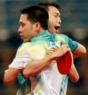 Наш последњи адут на стонотениском турниру, пар Александар Каракашевић и Слободан Грујић завршио је такмичење у четвртфиналу, пошто је поражен од трећих носилаца на турниру, Лаија Чак Коа и Чинг Лија из Хонг Конга са 4:1 у сетовима (11:6, 10:12, 11:6, 13:11, 11:9).