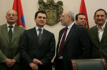 Београд, 10. децембар 2008. године – Потпредседник Владе Републике Србије за европске интеграције Божидар Ђелић састао се данас са бившим потпредседником и првим економистом Светске банке Јозефом Штиглицем, добитником Нобелове награде за економију 2001. године.