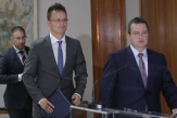 Београд, 18. септембар 2015. године – Први потпредседник Владе Републике Србије и министар спољних послова Ивица Дачић и министар унутрашњих послова Небојша Стефановић разговарали су данас са министром спољних послова и спољне трговине Мађарске Петером Сијартом о проблему миграната и начину решавања актуелне мигрантске кризе. | даље »