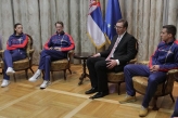 Београд, 7. март 2017. године – Председник Владе Републике Србије Александар Вучић и министар омладине и спорта Вања Удовичић примили су данас српске атлетичаре Ивану Шпановић, Михаила Дудаша и Лазара Анића, који су учествовали у финалу на Европском атлетском првенству у Београду. | даље »