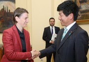 Београд, 8. септембар 2017. године – Председница Владе Републике Србије Ана Брнабић разговарала је данас са државним министром Министарства спољних послова Јапана Казујукијем Наканеом, који јој је честитао на премијерској функцији и изразио наду да ће даља сарадња допринети унапређењу односа између Србије и Јапана. | даље »