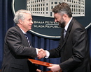 Београд, 27. март 2008. године – Министар без портфеља задужен за спровођење Националног инвестиционог плана у Влади Републике Србије Драган Ђилас и европски првак у пливању Милорад Чавић посетили су данас Основну школу "20. октобар" на Новом Београду. | даље »