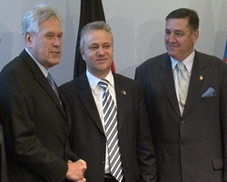 | Михаел Глос, Млађан Динкић и Милутин Мркоњић |