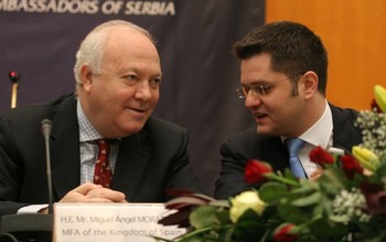 | Мигел Анхел Моратинос и Вук Јеремић |