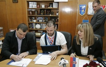 Београд, 23. фебруар 2009. године – Министар омладине и спорта у Влади Републике Србије Снежана Самарџић-Марковић, ватерполиста Данило Икодиновић и генерални секретар Ватерполо савеза Србије Марко Стефановић потписали су данас у Палати Владе Србије уговор о узајамној сарадњи који се односи на стипендирање у области примене Националне стратегије за младе.