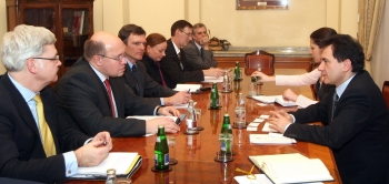 Београд, 23. фебруар 2009. године – Потпредседник Владе Републике Србије за европске интеграције Божидар Ђелић упознао је данас парламентарног државног секретара Савезног министарства унутрашњих послова Немачке Петера Алтмајера са свим активностима Владе усмереним на интеграцију Србије у ЕУ.