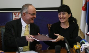 Београд, 30. март 2009. године – Министар финансија у Влади Републике Србије Диана Драгутиновић и шеф Канцеларије Светске банке у Србији Сајмон Греј потписали су данас Уговор о програмском зајму за развој приватног и финансијског сектора између Републике Србије и Међународне банке за обнову и развој.