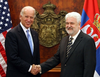 | Амбасадор САД у Србији Камерон Мантер, Џозеф Бајден, Мирко Цветковић и потпредседник Владе Србије и министар економије и регионалног развоја Млађан Динкић |