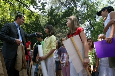 Београд, 12. јун 2009. године – Министар животне средине и просторног планирања у Влади Републике Србије Оливер Дулић посетио је данас Основну школу "Ђура Јакшић" на Канаревом брду, где је доделио поклоне и награде победницима такмичења основних школа у уређењу школских дворишта.