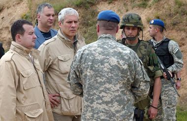 Министар одбране Драган Шутановац разговарао је данас током посете Бујановцу са командантом Јужног крила НАТО Марком Фицџералдом о терористичком нападу на припаднике Жандармерије у Копненој зони безбедности код Лучана, и том приликом затражио да КФОР помогне у расветљавању тог напада.