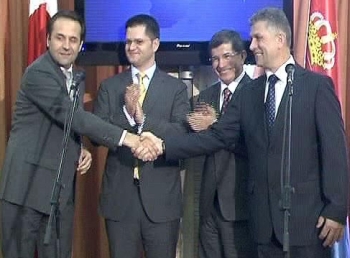 Нови Пазар, 24. јул 2009. године – Министар спољних послова Вук Јеремић, министар рада и социјалне политике Расим Љајић и министар без портфеља у Влади Србије Сулејман Угљанин постигли су данас на састанку са министром спољних послова Турске Ахметом Давутоглуом договор о томе да та земља инвестира изградњу аутопута кроз Санџак.