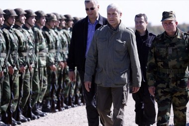 Пештер, 7. октобар 2009. године – Председник Србије Борис Тадић, први потпредседник-заменик председника Владе и министар унутрашњих послова Ивица Дачић и министар одбране Драган Шутановац присуствовали су данас здруженој тактичкој вежби "Одлучан одговор 2009" која је одржана на полигону Пештер.