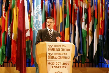 Београд/Париз, 7. октобар 2009. године – Министар спољних послова у Влади Републике Србије Вук Јеремић изјавио је данас на Генералној дебати Унеска у Паризу да је у 21. веку неопходно културу и културно наслеђе ослободити од политике и осудити уништавање културне баштине где год да се оно догоди.