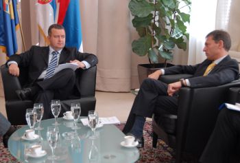 Београд, 8. октобар 2009. године – Први потпредседник-заменик председника Владе и министар унутрашњих послова Ивица Дачић састао се данас са новопостављеним амбасадором Европске комисије у Србији Винсентом Дежером.