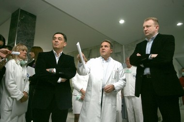 Београд, 7. новембар 2009. године – Министар здравља у Влади Републике Србије Томица Милосављевић, градоначелник Београда Драган Ђилас и градски секретар за здравство Зоран Благојевић обишли су данас пет здравствених установа у циљу анализе њихове спремности за рад у отежаним условима.