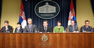 | Слева: Жарко Обрадовић, Диана Драгутиновић, Драган Шутановац, Ивица Дачић, Снежана Маловић, Расим Љајић и Томица Милосављевић |