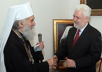 | Новоизабрани патријарх СПЦ Иринеј и председник Владе Србије Мирко Цветковић |