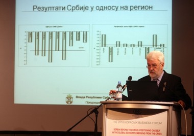 на отварању “Копаоник бизнис форума 2010” истакао да нема поузданих података на основу којих би се могло рећи да је Србија изашла из кризе, али постоји низ показатеља који нас наводе да са оптимизмом очекујемо тај тренутак.