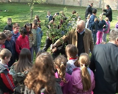 Гложан, 16. април 2010. године – Министар пољопривреде, шумарства и водопривреде у Влади Републике Србије Саша Драгин данас је са ђацима, у оквиру акције „Како расте дрво“, у дворишту основне школе „Јозеф Марчок Драгутин“ у Гложану посадио 37 садница претежно украсног дрвећа.