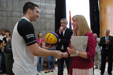 Београд, 4. мај 2010. године – Министар омладине и спорта у Влади Републике Србије Снежана Самарџић-Марковић организовала је данас пријем за ватерполисте и кошаркаше "Партизана", вицешампионке Европе одбојкашице "Црвене звезде" и прваке Европе рваче "Партизана".