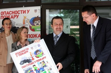 Београд, 5. мај 2010. године – Први потпредседник-заменик председника Владе Србије и министар унутрашњих послова Ивица Дачић изјавио је данас приликом посете Основној школи “Јован Дучић” да заштита деце од пожара и других катастрофа захтева образовање младих и унапређење безбедности школа.