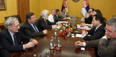 Београд, 9. јун 2010. године – Потпредседник Владе Србије за европске интеграције и министар за науку и технолошки развој Божидар Ђелић разговарао је синоћ са делегацијом Европског центра за нуклеарна истраживања (ЦЕРН) о могућностима које чланство у ЦЕРН-у пружа истраживачима у Србији, али и домаћој привреди, нарочито у домену информационих технологија.