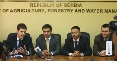 Београд, 23. јул 2010. године – Помоћник министра пољопривреде, шумарства и водопривреде у Влади Републике Србије Милош Миловановић и директор Компензационог фонда Милан Ђаков присуствовали су данас потписивању уговора о додели преференцијалних кредита између Европске банке за обнову и развој (ЕБРД) и банке "Societe Generale".