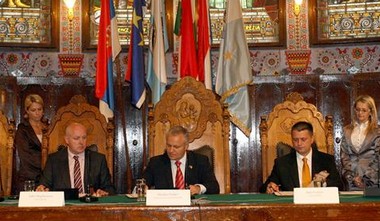 | Џон Стефенсон, Млађан Динкић и Саша Вучинић |