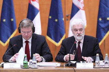 На седници Савета за европске интеграције Републике Србије учесницима се обратио и комесар ЕУ за проширење Штефан Филе.