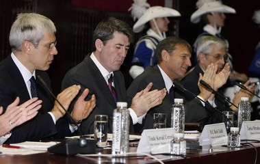 | Борис Тадић, Жарко Обрадовић, Венсан Дежер и Лу Брефор |