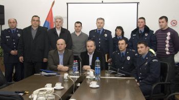 Београд, 9. март 2011. године – Начелник Полицијске управе за Град Београд Стеван Бјелић примио је данас полицајце Зорана Симића, Радована Берановића и Радована Алексића из Полицијске станице Обреновац који су ухапсили разбојника и спречили га да активира ручну бомбу.