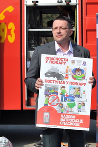 Београд, 7. април 2011. године – Помоћник министра унутрашњих послова и начелник Сектора за ванредне ситуације Предраг Марић отворио је данас у Основној школи "Јован Поповић" на Карабурми акцију "Месец дана заштите од пожара" у оквиру које је свака учионица добила плакат са правилима понашања у случају пожара.