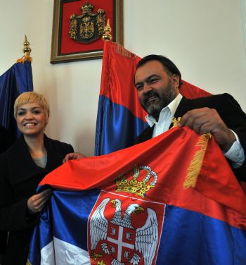 Он је са помоћником министра вера и дијаспоре Вукманом Кривокућом Нини Радојчић уручио заставу Србије и рекао јој да очекује да ће јој српска дијаспора, посебно из Швајцарске и Хрватске, али и осталих земаља, пружити подршку.