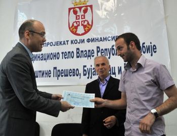Прешево, 20. мај 2011. године – Министар за људска и мањинска права, државну управу и локалну самоуправу и председник Координационог тела Владе Републике Србије за општине Прешево, Бујановац и Медвеђа Милан Марковић доделио је данас у Прешеву дипломе групи од 90 полазника курса српског језика.
