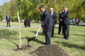 Београд, 5. септембар 2011. године – Министар спољних послова у Влади Републике Србије Вук Јеремић и министар спољних послова Египта Мохамед Камел Амр посадили су данас у Парку пријатељства на Ушћу по једно стабло платана поводом 50- годишњице првог самита Покрета несврстаних.