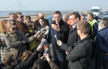 Београд, 2. новембар 2011. године – Министар за инфраструктуру и енергетику у Влади Републике Србије Милутин Мркоњић обишао је данас радове на мосту “Газела”, чијих ће свих шест трака бити отворено за саобраћај од 12. новембра.