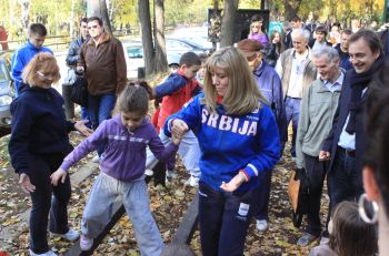 Београд, 4. новембар 2011. године – Министар омладине и спорта у Влади Републике Србије Снежана Самарџић-Марковић, директор Републичког завода за спорт Јасминко Поздерац и певач Здравко Чолић отворили су данас адаптирану трим стазу Републичког завода за спорт у Кошутњаку.