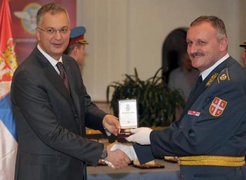 Београд, 23. децембар 2011. године – Министар одбране у Влади Републике Србије Драган Шутановац и командант Ваздуховпловства и ПВО бригадни генерал Ранко Живак уручили су данас поводом Дана Ваздухопловства и противваздухопловне одбране (В и ПВО) златне и сребрне медаље и војне спомен-медаље истакнутим припадницима Војске Србије и Министарства одбране.
