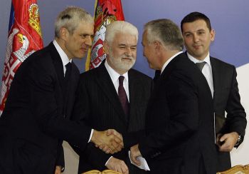 | Слева: Борис Тадић, Мирко Цветковић, Михалис Цамас и Бранко Радујко |