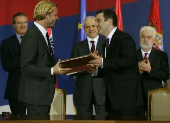 Београд, 20. март 2012. године – Министар економије и регионалног развоја у Влади Републике Србије Небојша Ћирић и председник Управног одбора компаније "Сваровски" Маркус Лангес-Сваровски потписали су вечерас у Председништву Србије уговор о додељивању средстава за директне инвестиције.